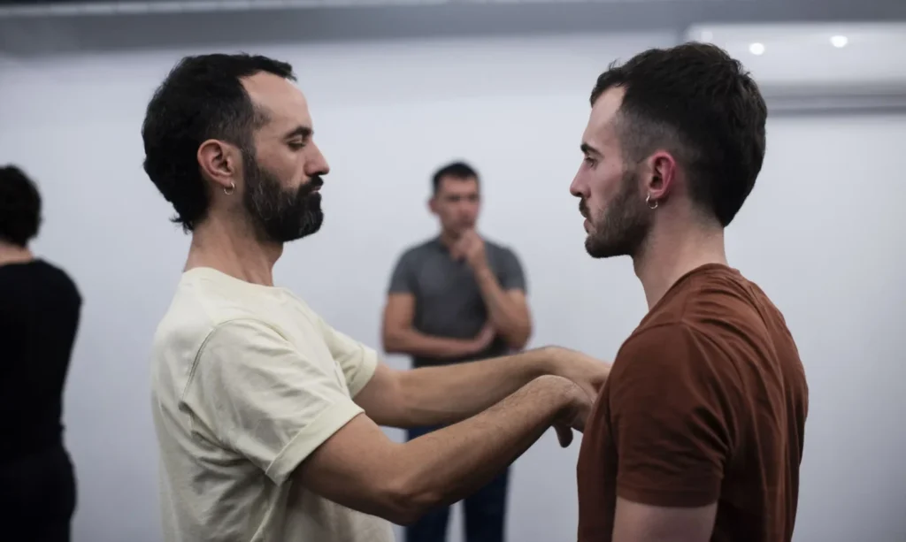 Hacemos invocaciones a los elementos y movemos la carne buscando no pensar en la forma, sino habitar la sensación.