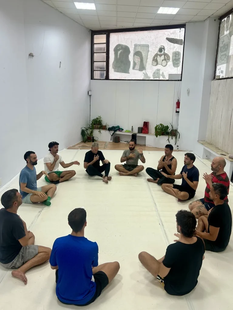 Hacemos un breve ritual para mover la carne, poniendo en práctica el Katsugen Undo y debatimos sobre los elementos y dramáticos de lo que vemos en escena.