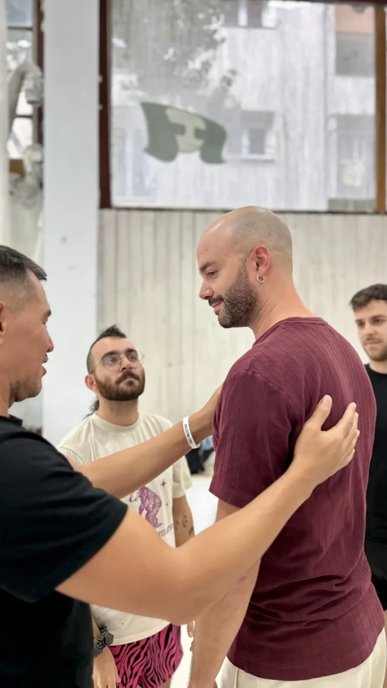 Cerramos nuestra práctica sensual con ejercicios de confianza y consciencia del eje de verticalidad y centro de gravedad.
