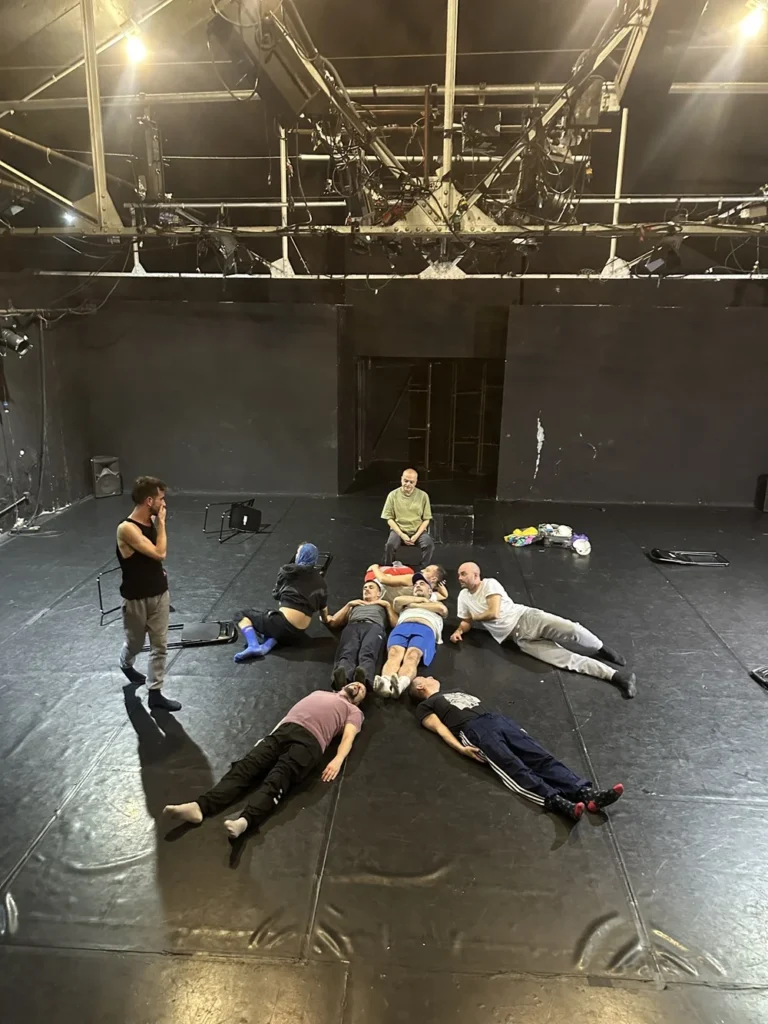Ensayamos la estructura completa de la pieza a mostrar en el Teatro Pradillo. ¡Mañana todxs a escena! 25 intérpretes con artistas invitados. ¡Una locura, una bacanal!