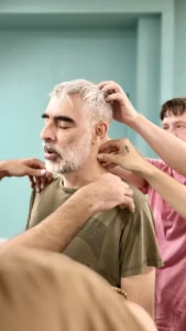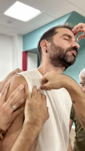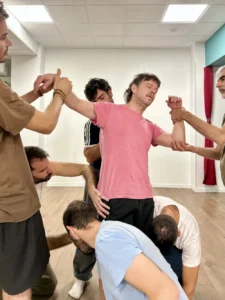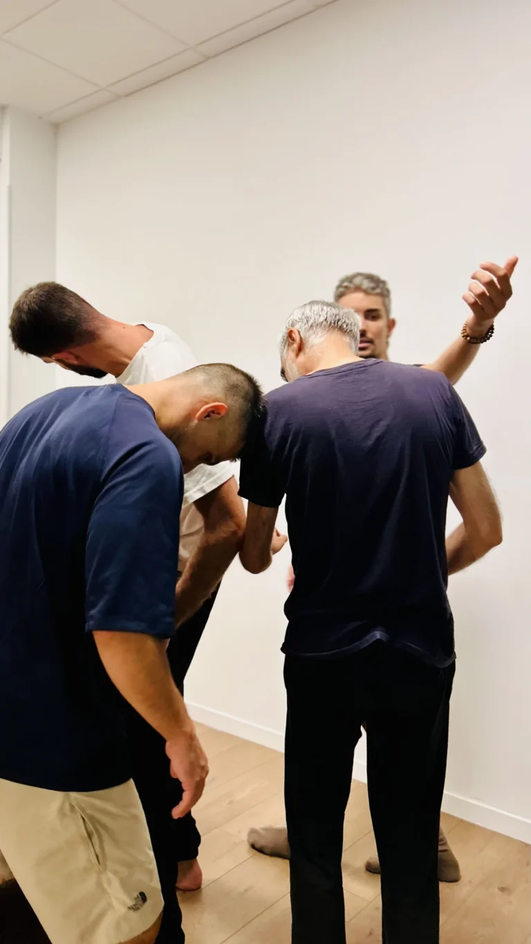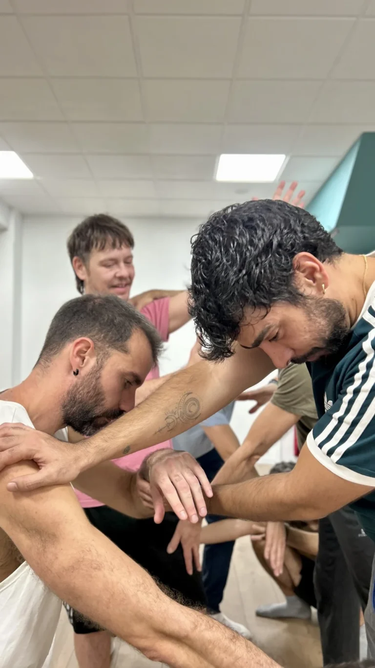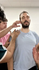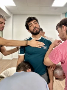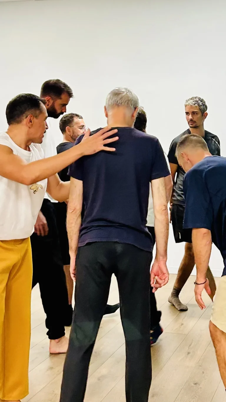 También practicamos nuestro tacto sin manos dentro de una improvisación grupal y finalmente, tacto consciente en las espaldas para cerrar la sesión.